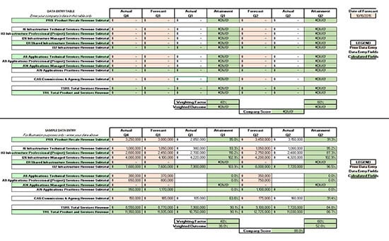 This tool will enable you to practice forecasting revenue over a two-quarter period by line of business and then gauge the accuracy of your revenue forecasting to see how accurate your forecasts were by tracking your projections against actual results. Once you have done this, you can formalize the process using your own tools to carry on consistent, accurate forecasting.